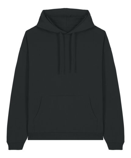 Oversized, cropped hoodie full-zip hoodie. Concealed zip to front in chrome finish. Dropped shoulders. Drawstring tie to waist which is sewn in at the back of the garment. Kangaroo pockets to front. Recycled polyester. We recommend using block out vinyl and inks. Product contains no branded neck or waist label. Removable Kimble or looped garment tags. Inner seam label holds important product information on one label with a second label containing brand information which can be cut-away.